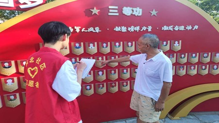 退伍老兵向实践队员黎凌云讲述革命烈士故事