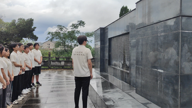 随行的晏洋同学向大家详细的介绍了纪念碑背后的故事,之后同学们举行了一场庄严肃穆的缅怀仪式。在纪念碑前,带队老师谢彬强调,同学们不仅要缅怀革命先烈,更要从他们的英勇事迹中汲取力量,将红色精神内化于心、外化于行。随后,全体成员现场默哀,表达对革命先烈的无限敬仰和深切怀念。