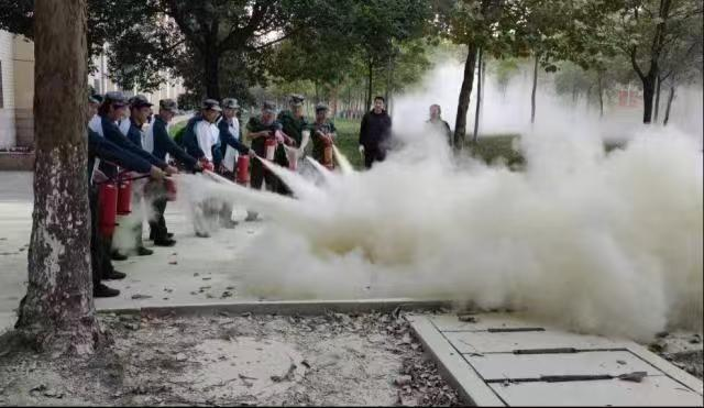 军训期间, 学院大一新生再次进行了消防安全演练,同学们通过使用灭火器对消防演习专用火盆进行灭火,以检验在培训中学到的消防知识转化为实际应用的能力。