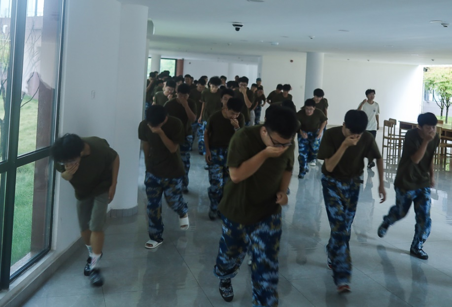 培训结束后,同学们进行了火灾逃生的演练。