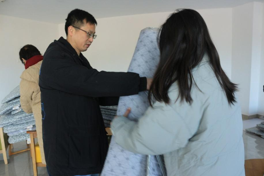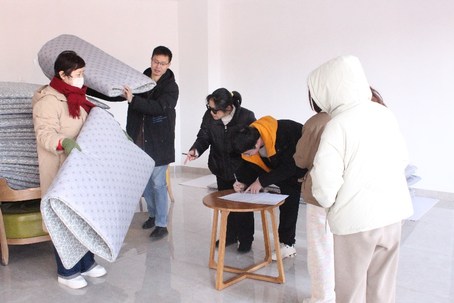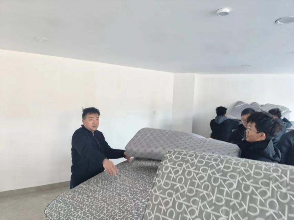 活动开始前,老师们早早将温暖物资放置于宿舍大厅,耐心等候学生们的到来。随后,学生们陆陆续续到达大厅,依次排队签字,现场井然有序。老师们亲自将物资发放到学生手中,并询问宿舍过冬情况。